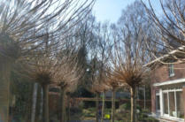 Gebruik het liefst een scherpe takkenschaar of snoeischaar. Snoei alle takken terug tot net iets boven de kroon van de boom. Zorg voor een mooie snede als je knipt. Niet trekken aan de schaar als je er niet doorheen komt. Raffels in de snede kunnen infecties van schimmels e.d. veroorzaken en dat wil je niet. Tip: Ruim na elke boom snoeien de afgesnoeide takken op. Doe je dit niet dan zul je merken dat het opruimen meer werk ‘lijkt’. Ook liggen de takken gruwelijk in de weg als je ze niet opruimd. Het zijn behoorlijk stugge takken dus kun je er makkelijk over struikelen. Als de klus is geklaart zul je zien dat ze weer uit gaan lopen zo rond de maand mei.