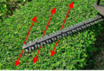 boven. Snoeiend naar boven toe en weer langzaam